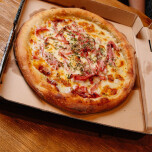 Ingredientes: Queso Mozzarella, salsa de tomate casera, jamón cocido y perejil. Harina 100% masa madre. Modo de preparación: Precalentar el horno a 270º C. Sacar la pizza del freezer y d ela bolsa (sin descongelarla) poner sobre la rejilla del horno. Tips: Antes de meterla en el horno, agregarle aceite de oliva sobre el cornicione. Cocinarla durante 12 minutos o hasta que los bordes estén bien crocantes. No la cocines de más. Si llegas a cocinar dos pizzas, ponelas una al lado de la ota, nunca una encima de la otra.