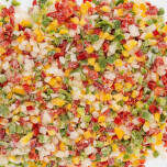 Ingredientes: Mezcla de cubos de pimientos rojos, verdes y amarillos con cubos de cebolla congelados I.Q.F. Sin T.A.C.C